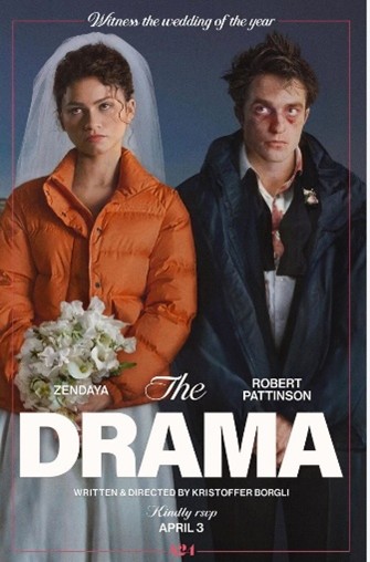 “The Drama” (2026) is a psychological romantic drama directed by Kristoffer Borgli and starring Zendaya as Emma and Robert Pattinson as Charlie. The story centers on a couple preparing for marriage whose relationship is shaken when a shocking confession from Emma’s past emerges during their wedding week.